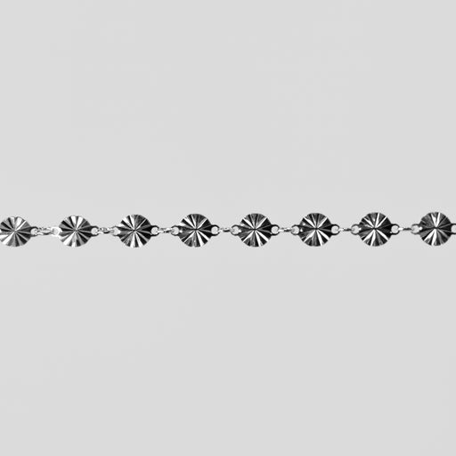 Close up of the 1420 Gold filled yellow dapped bar chain on a womans wrist to showcase the design of the chain